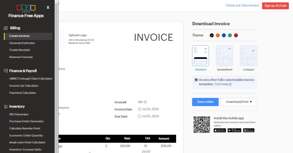 Zoho provides pre-designed invoice templates that you can customize with your company’s logo and branding. This eliminates the need to design invoices from scratch, saving you time and effort.
