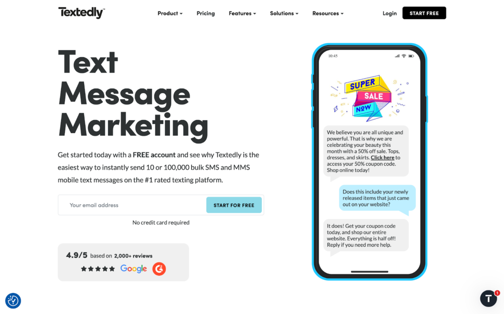 Textedly offers a free plan with 50 text messages, allowing businesses to get started at no cost. Paid plans begin at $29/month (billed annually) with 600 text messages and scale up to enterprise-level plans supporting hundreds of thousands of messages per month.