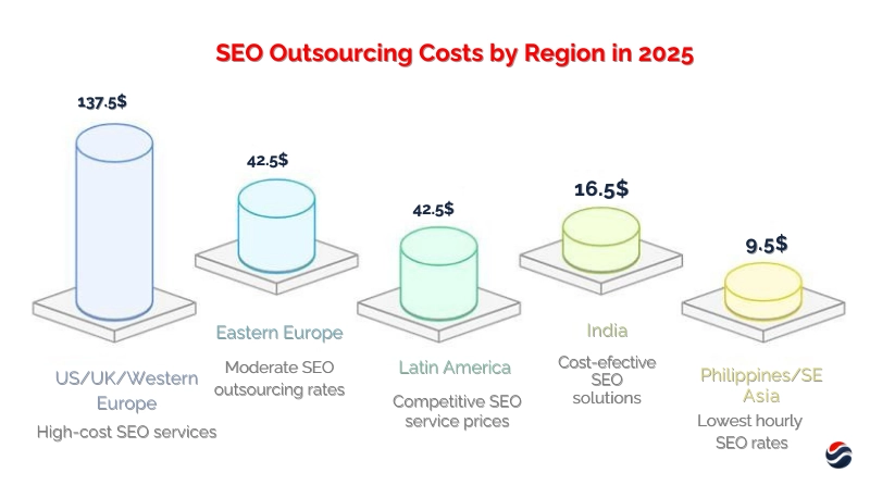 Here are the average rates of SEO outsourcing based on location in 2026: