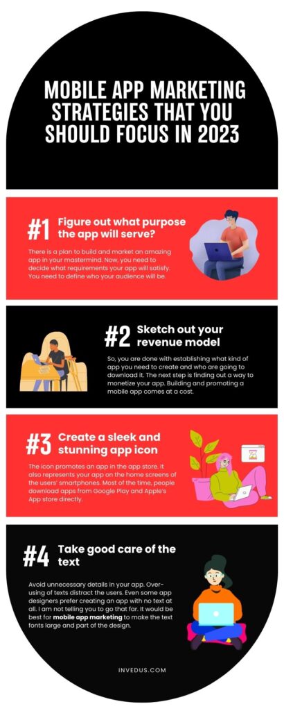 You might be surprised by knowing that app marketing strategies should start to be developed right when you decide. Getting the customers an idea about the app will make them anticipate the launching of your application. They will be your loyal and active users, for sure!